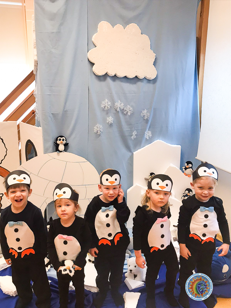 A minicsoportosok a Déli sarkra kalandoztak pingvin jelmezben.